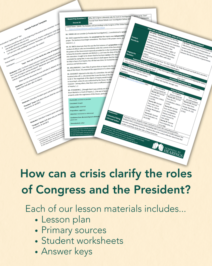 Our brand-new FREE lesson plan on General St. Clair’s Defeat is live NOW! Made especially for 8th grade US History and aligned to MI content standards, this lesson asks students to consider the compelling question, “How can a crisis clarify the roles of Congress and the President?”